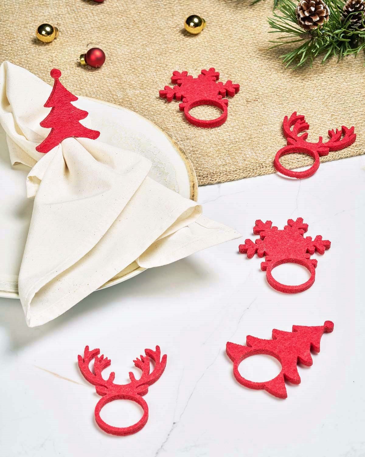 Paket içerisinde; 2 adet geyik,2 adet kar tanesi,2 adet çam ağacı desenli peçete halkası vardır.